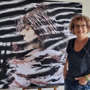 Zij heeft haar atelier in Arnhem en brengt schoonheid in verval in beeld. Hiervoor gebruikt zij foto’s, die zij van haar eigen huid heeft gemaakt. Zij bewerkt deze met diverse mixed media technieken op groot formaat, geprint op textiel en in ruimtelijk werk. Lees verder